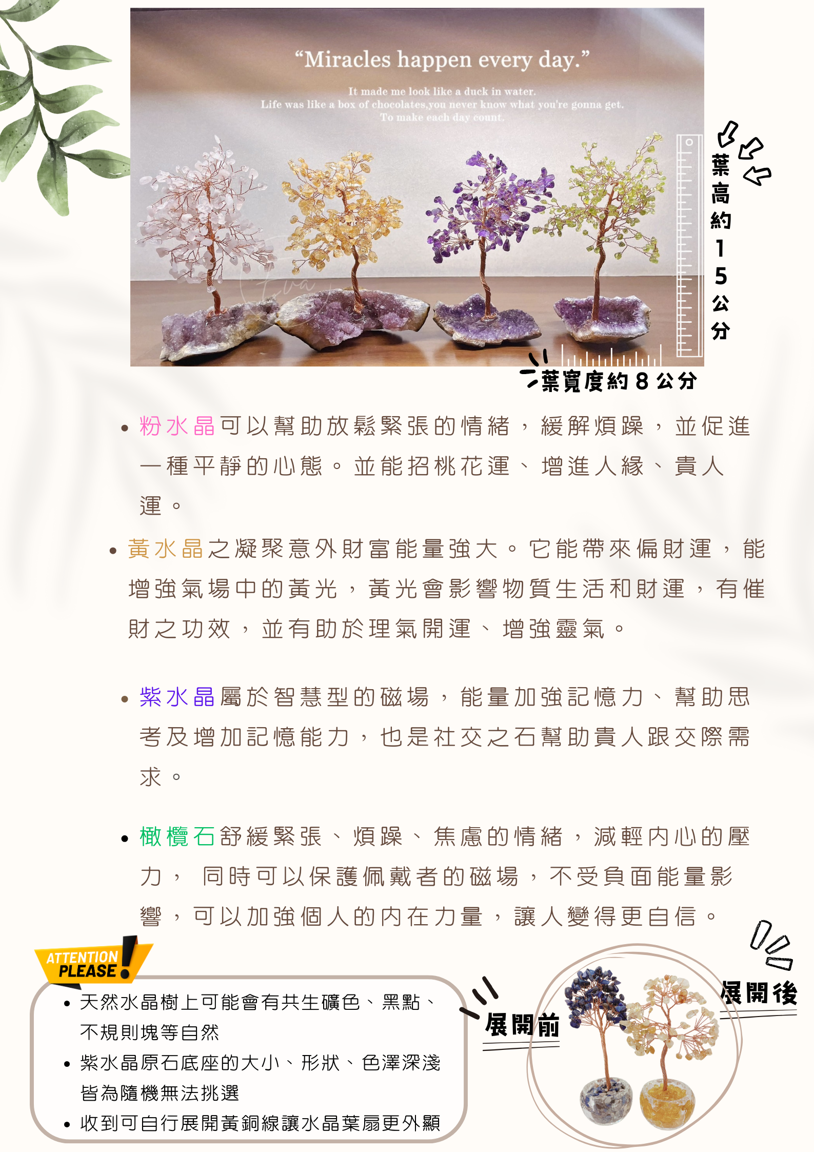 .水晶樹本身約15公分高X8公分寬