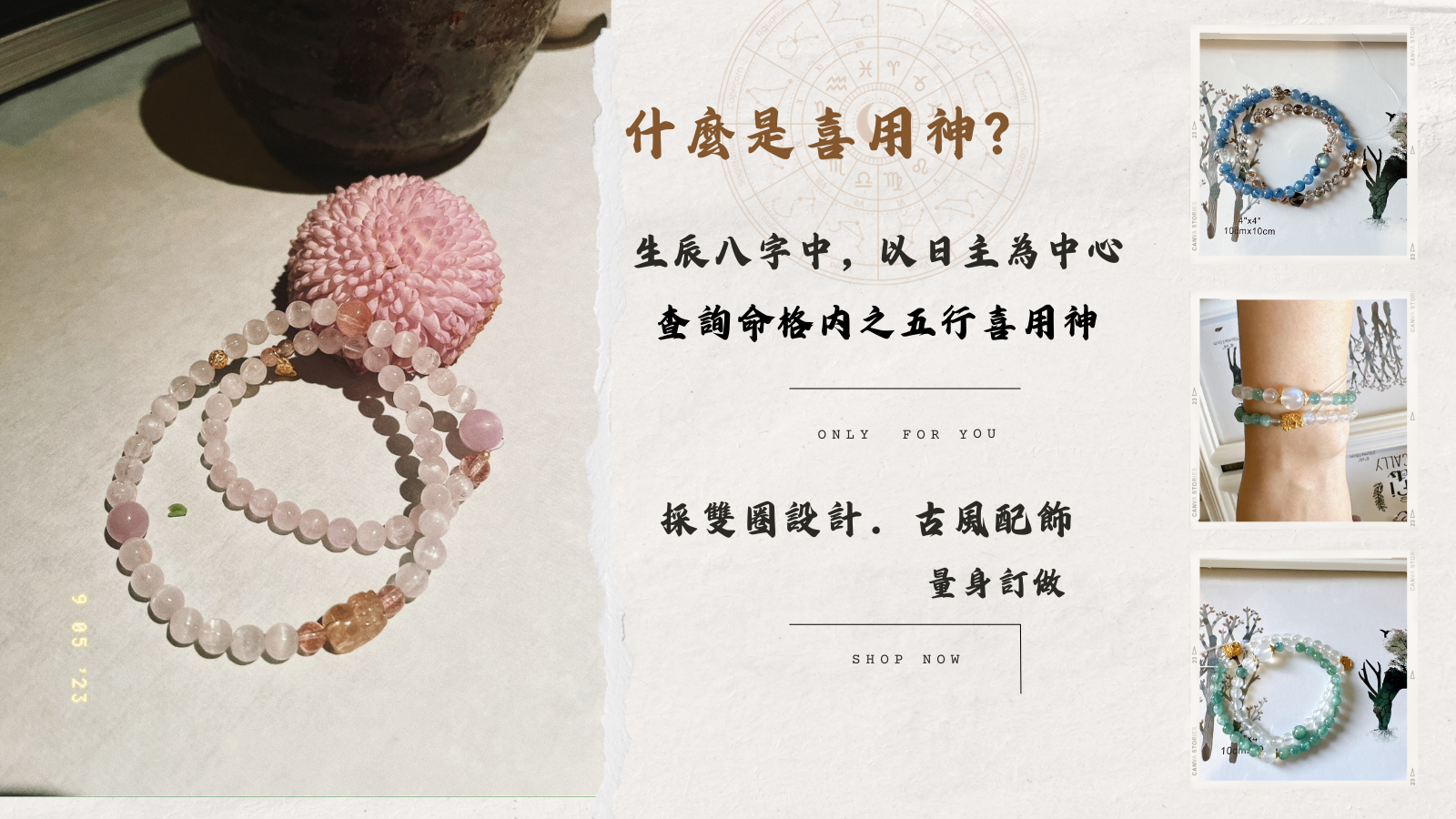喜用神設計以天生的命盤生辰配置為設計,盼以專業建議為優先